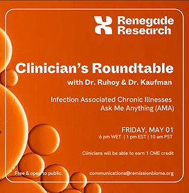 Ilene Ruhoy, MD, PhD, and David Kaufman, MD, return to Renegade Research Clinician's Roundtable to answer more questions about Infection Associated Chronic Illnesses.