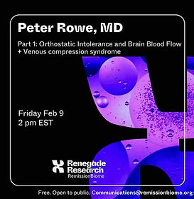 Besides OI, brain blow flow, and venous compression syndromes, Dr. Rowe talks about ME/CFS, EDS and HSD, pelvic congestion syndrome (PCS), May-Thurner Syndrome, Cerebral Blood Flow (CBF) ; CBF & Long Covid (LC), Nutcracker Syndrome, Superior Mesenteric Artery Syndrome, Median Arcuate Ligament syndrome, Provoked Post Exertional Malaise (PEM), Orthostatic Hypotension (OH), Delayed OH, NMH, & POTS.